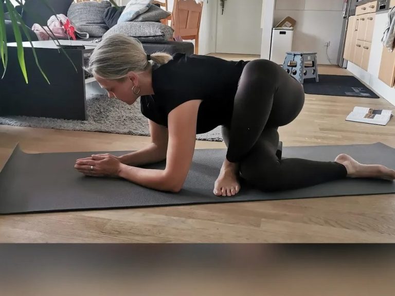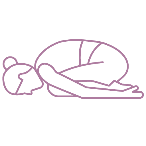 Der Garbhasana entspannt die Wirbelsäule, den Nacken und dehnt die Rückenmuskulatur. In dieser Position werden die Knie gestützt und die Stirn leicht auf den Boden gelegt, während die Arme entspannt an den Seiten liegen.